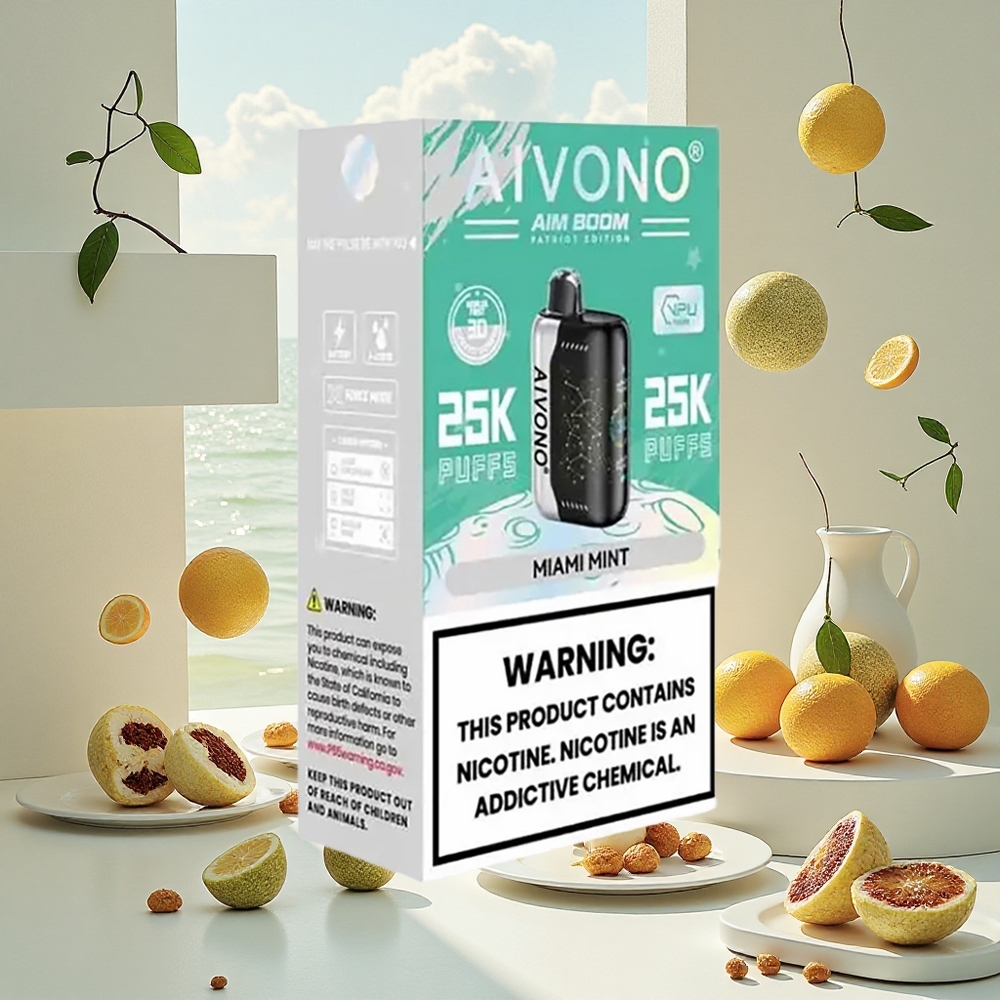 Aivono AIM BOOM 25000 Puffs 0% Nikotin – Miami Mynte Eller Aivono AIM BOOM 25000 Puffs 5% Nikotin – Miami Mynte
