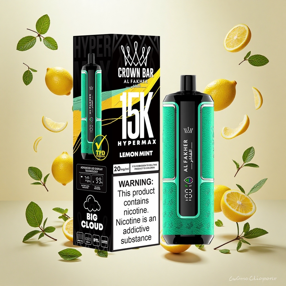 Al Fakher Crown Bar 15K Hypermax Engangs Vape Kit med 22ml E-væske og Sitron Mynte