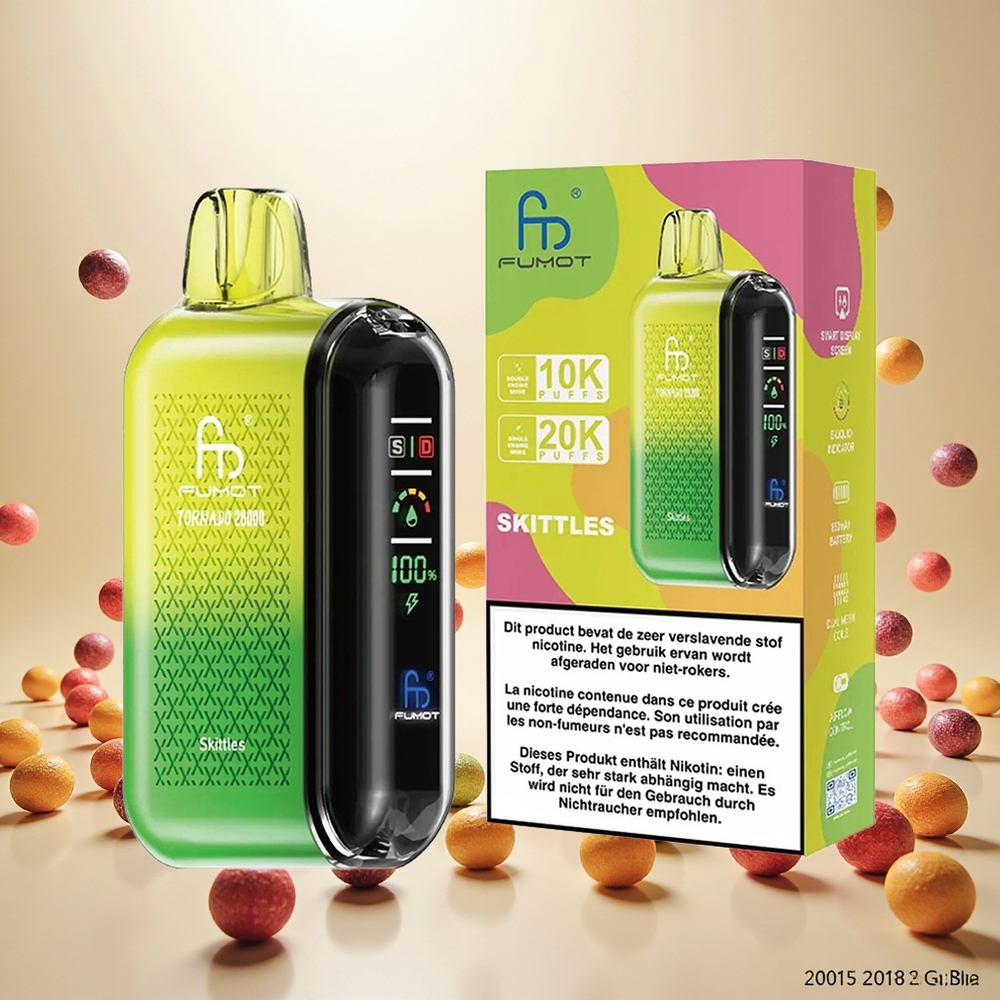 Fumot Tornado 20000 Puffs Skittles (20ml E-væske Kapasitet, 2% Nikotin)