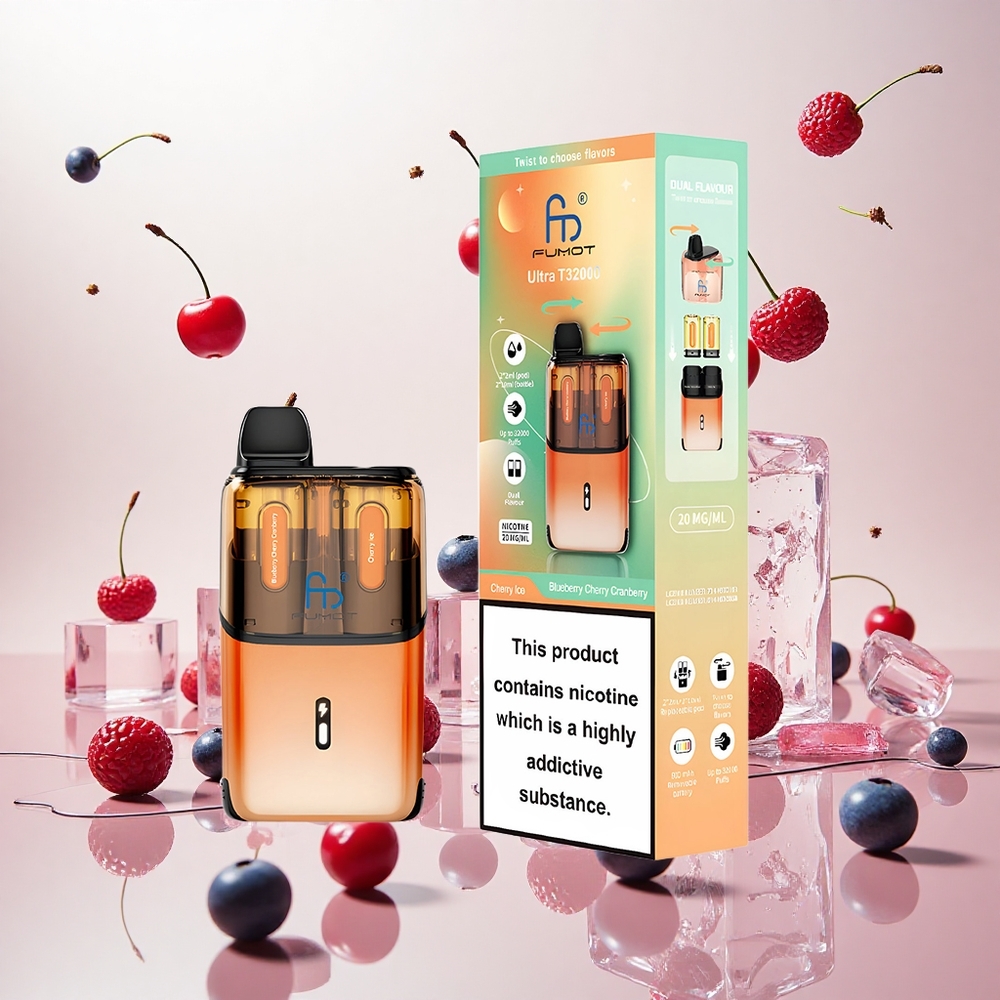 Fumot Ultra T32000 Engangsdamp med 32000 puff og Blåbær Kirsebær Tranebær – Kirsebær Is