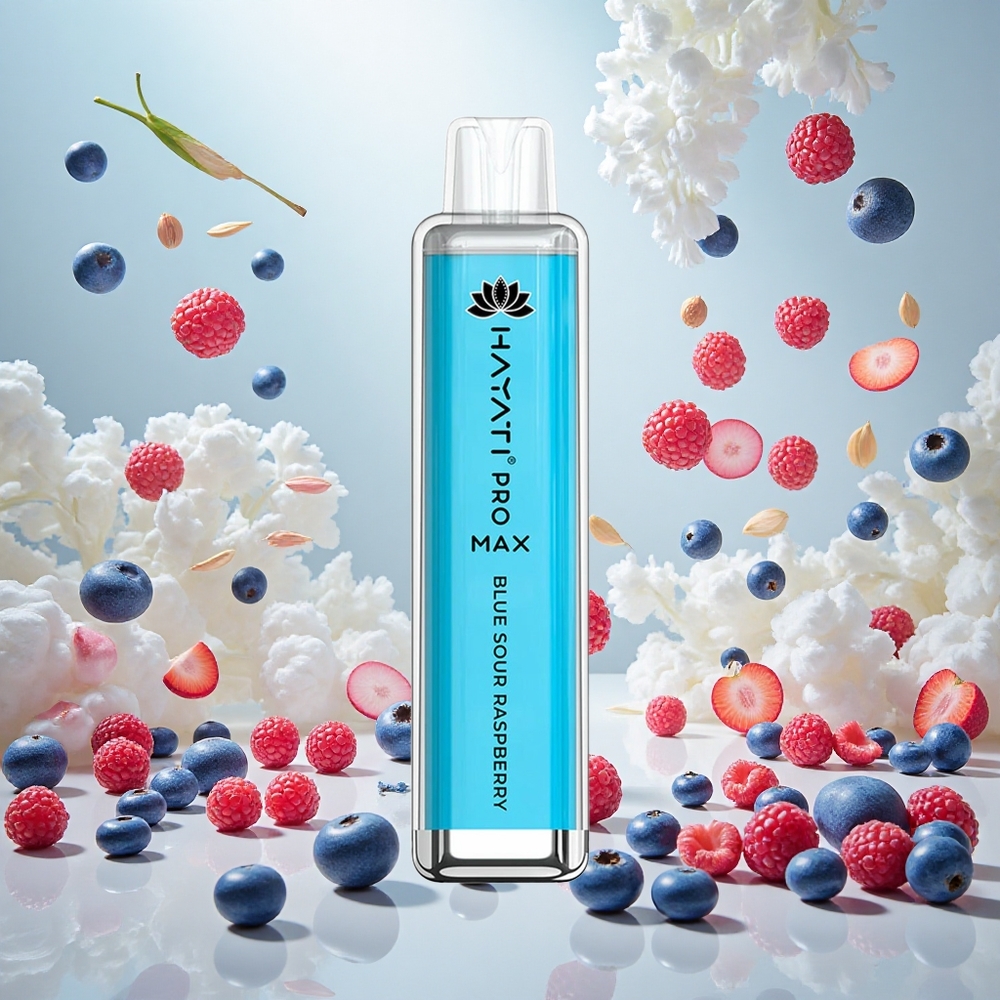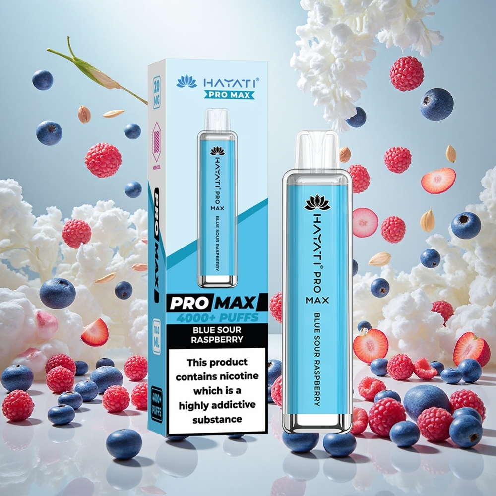 Hayati Pro Max 4000 Puffs Disposable Vape Blå sur bringebær med oppladbart batteri og 2ml tank