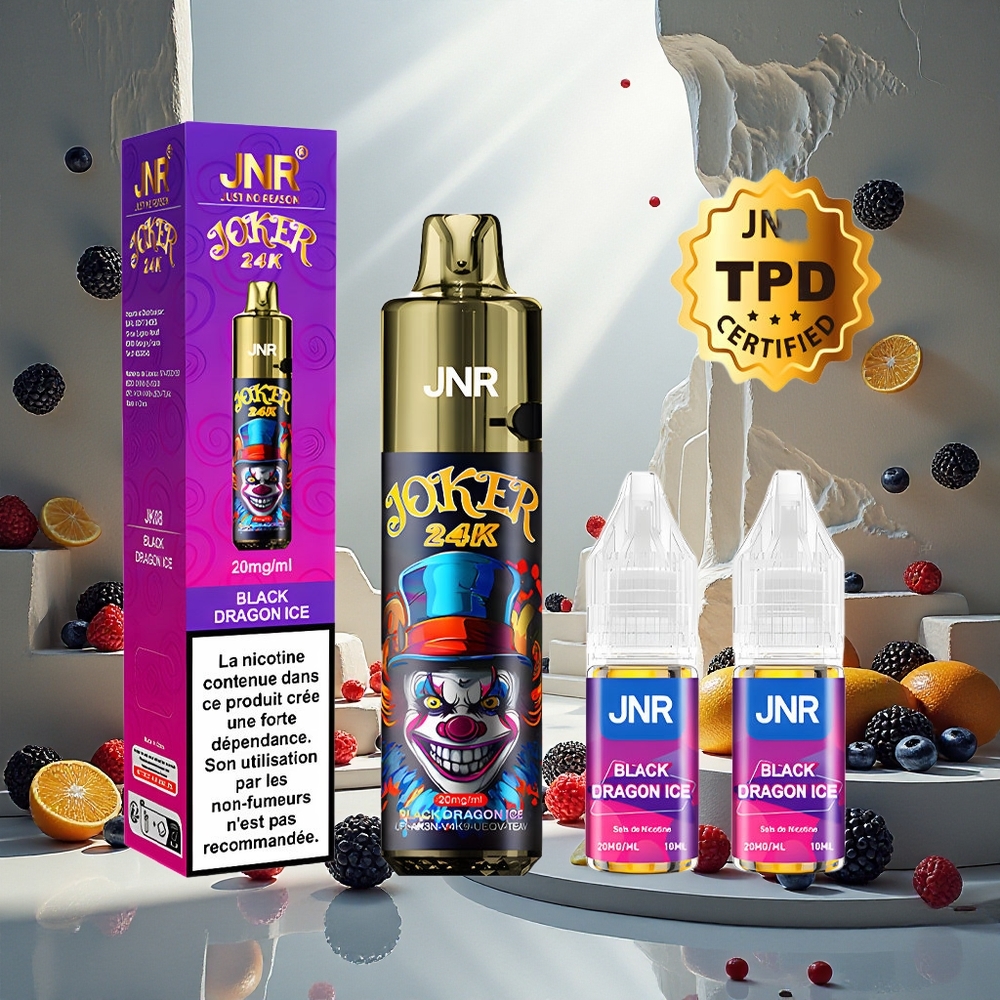 JNR Joker 24K Puffs Engangsvape Svart Drage Is med 800mAh Batteri
