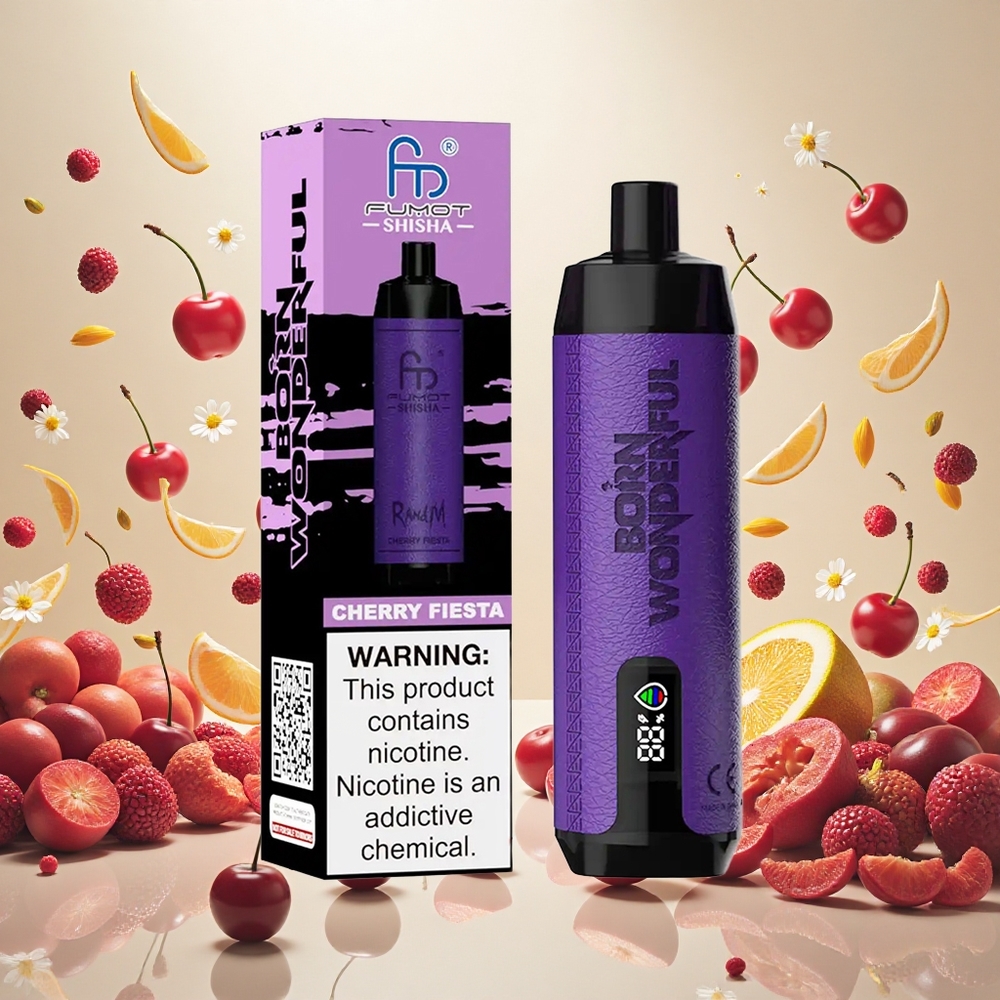 RandM Fumot Shisha 10000 Puffs Engangs Vape med LED-indikator og Kirsebær Fiesta