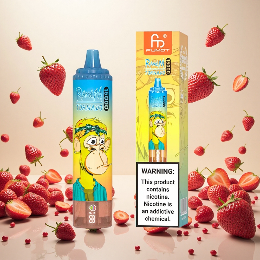 RandM Fumot Tornado 15000 Puffs Engangsvape Jordbær med 25ml kapasitet og Mesh Coil