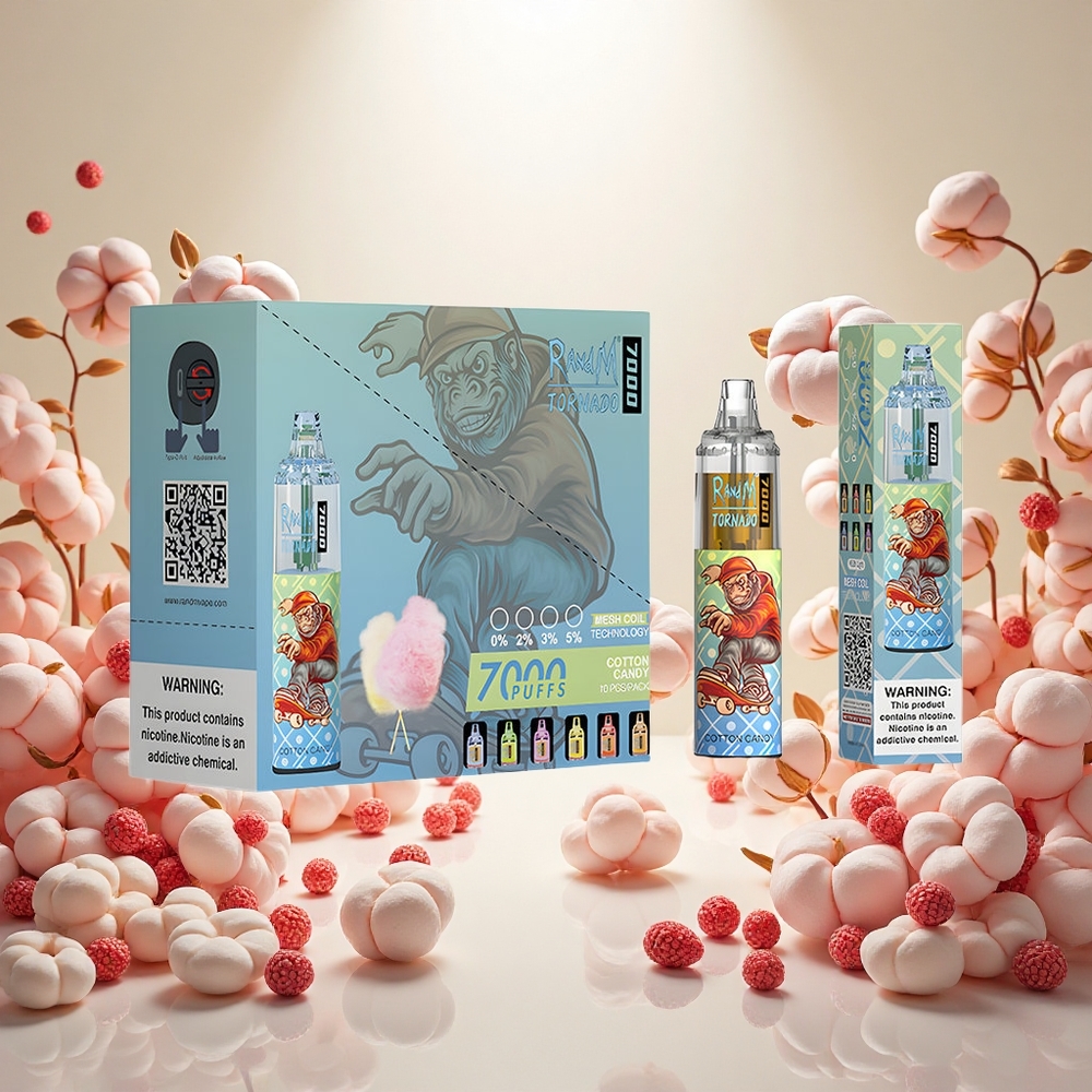 RandM Fumot Tornado 7000 Puffs Engangsvape med 14 ML E-væske og Cotton Candy (Sukkertøy)