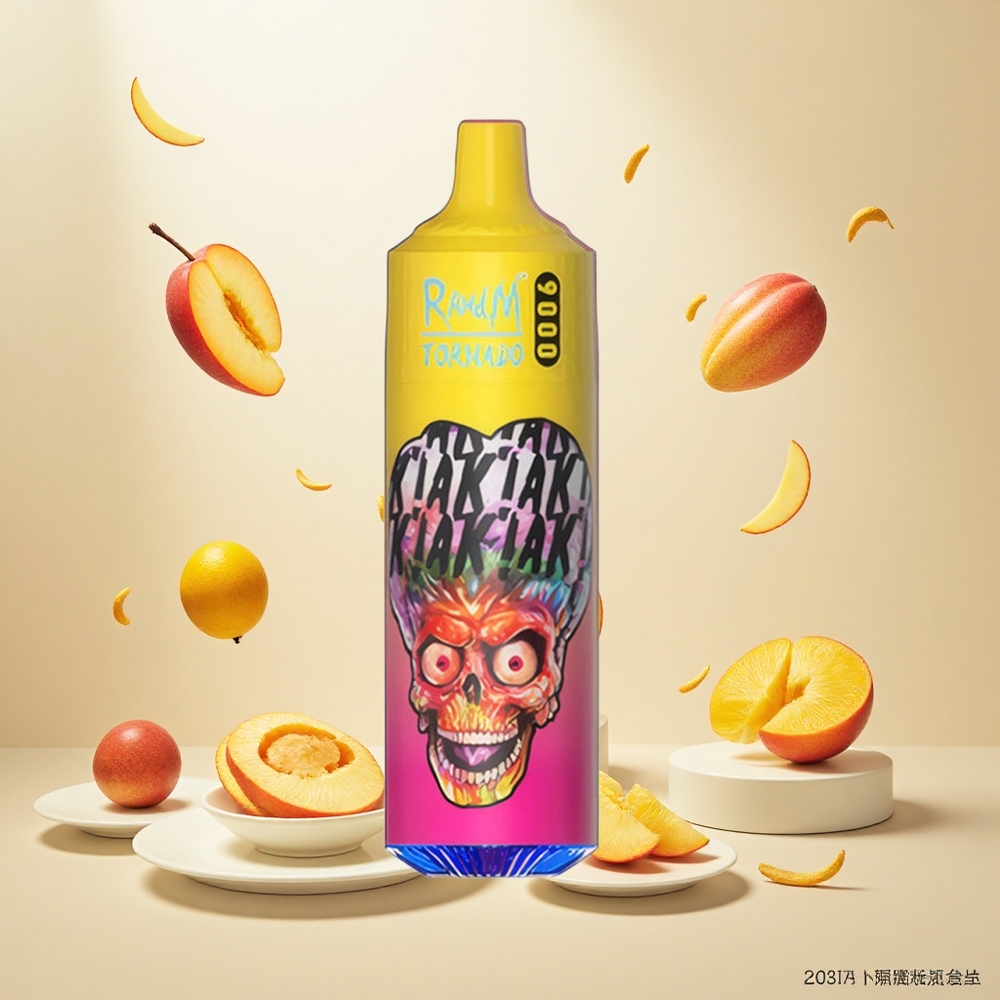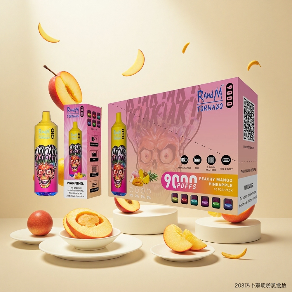 RandM Fumot Tornado 9000 Puffs (850 mAh Oppladbar & 18 mL Væske) Peachy Mango Ananas