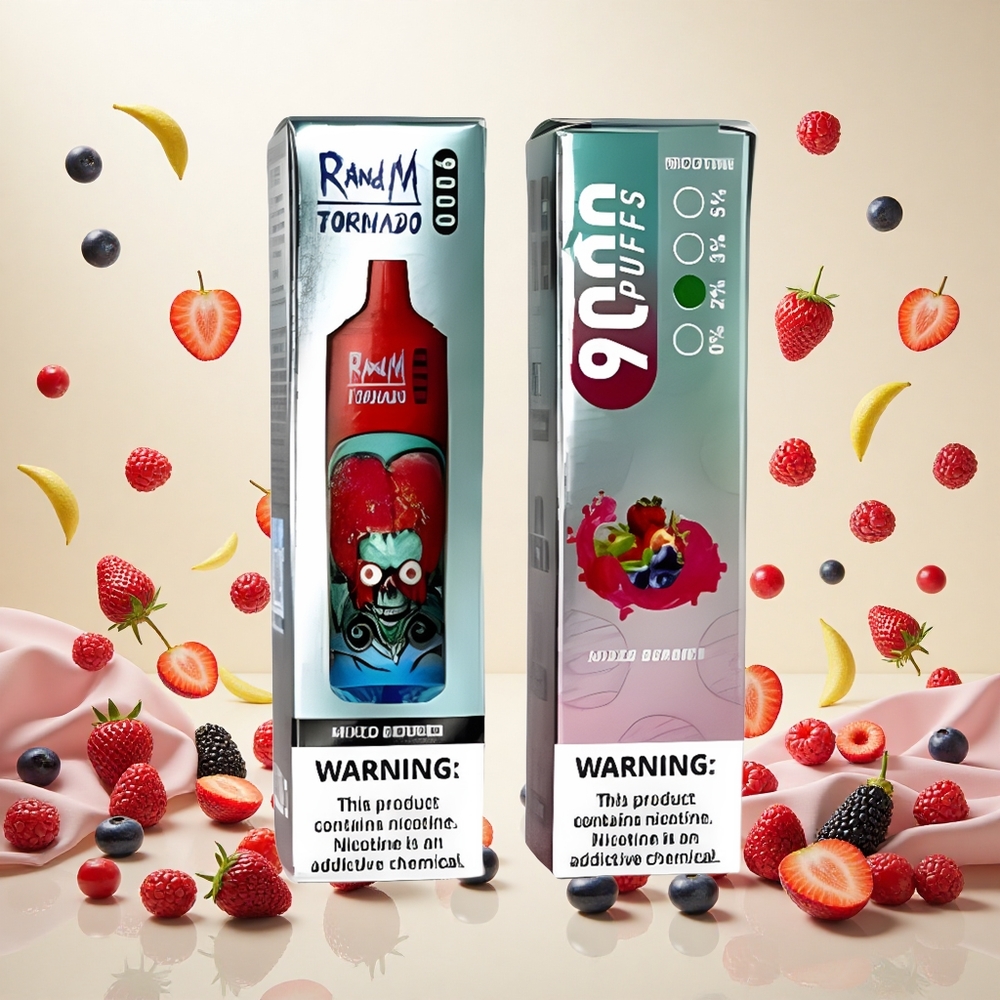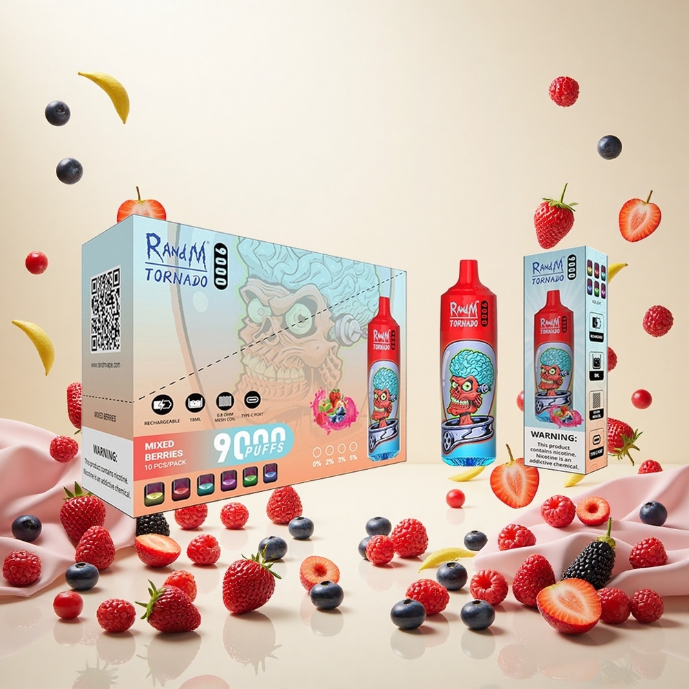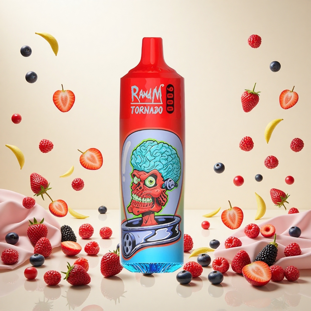 RandM Fumot Tornado 9000 Puffs Blandede Bær 18 mL og Opladbar Batteri