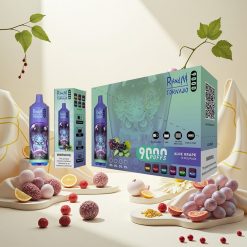 RandM Fumot Tornado 9000 Puffs Engangsvape Jordbær Bringebær Kirsebær Is (850 mAh Oppladbar)
