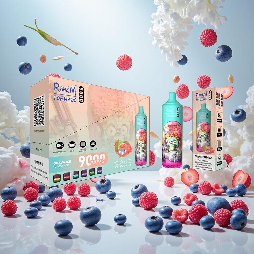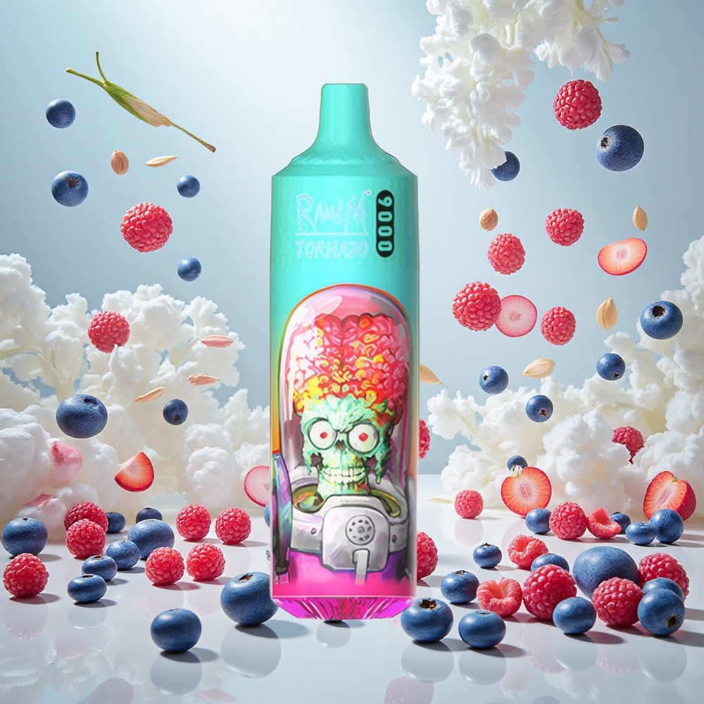 RandM Fumot Tornado 9000 Puffs Engangsvaper Blå Sur Bringebær (850 mAh Oppladbar, 18 mL)