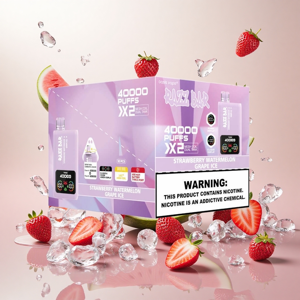 Razz Bar 40000 Puffs Engangs Vape JORDBAER_VANNMELON_IS med Skjermvisning