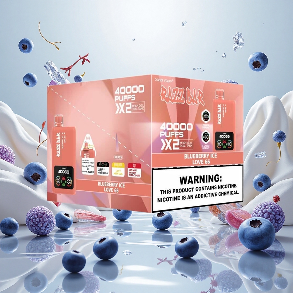 Razz Bar 40000 Puffs Oppsettbar Vape BLÅBÆR IS med Skjermdisplay