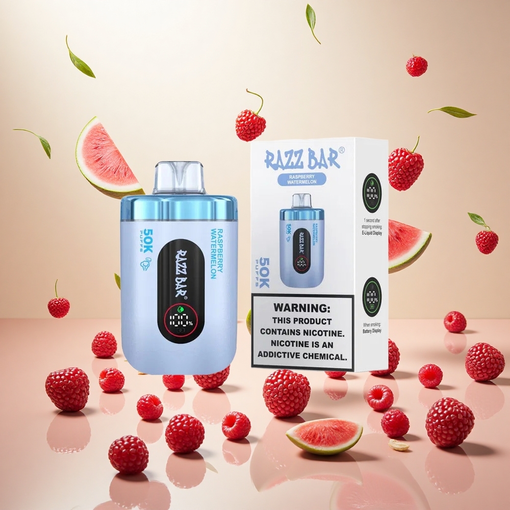 Razz Bar 50K Puffs Engangsdamper med Bringebær og Vannmelon – 50000 Puff, 1.0 Ohm Mesh Coil