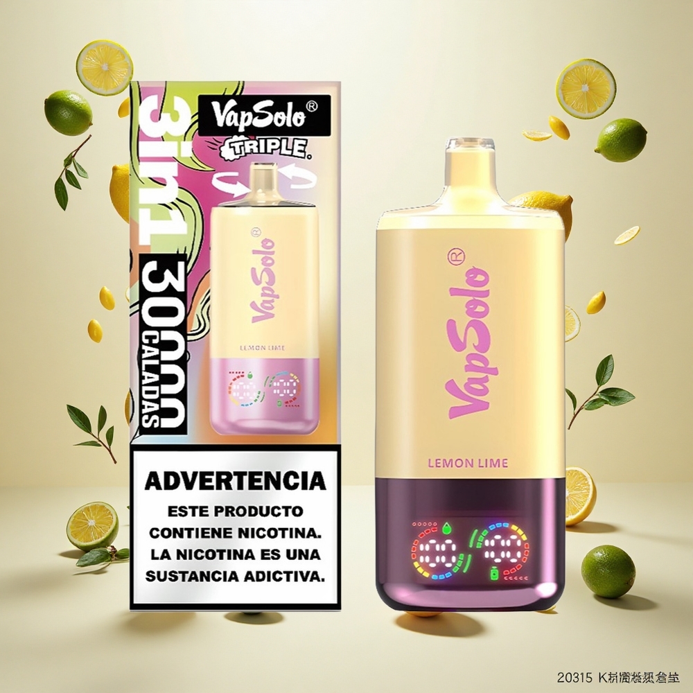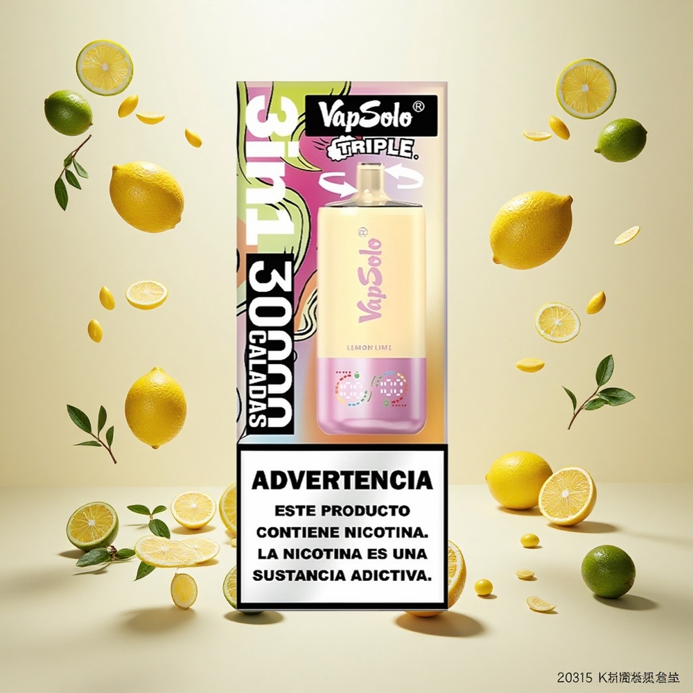 VapSolo Triple 30000 Puffs Engangsdamper Sitron Lime med 40ml E-væske og Type-C-lading