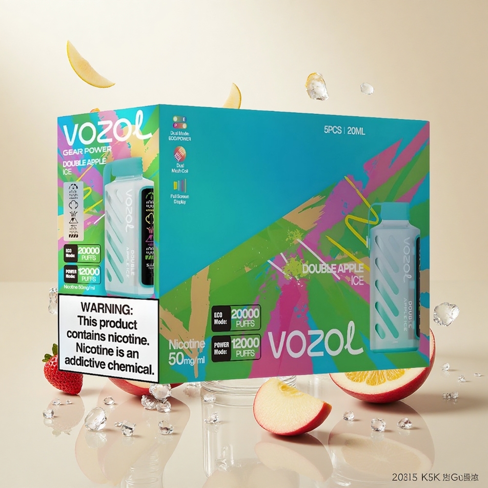 VOZOL Gear Power 20000 Puffs Dobbel Eple Is med 20mL Fyll og S.i.L.C. Tech