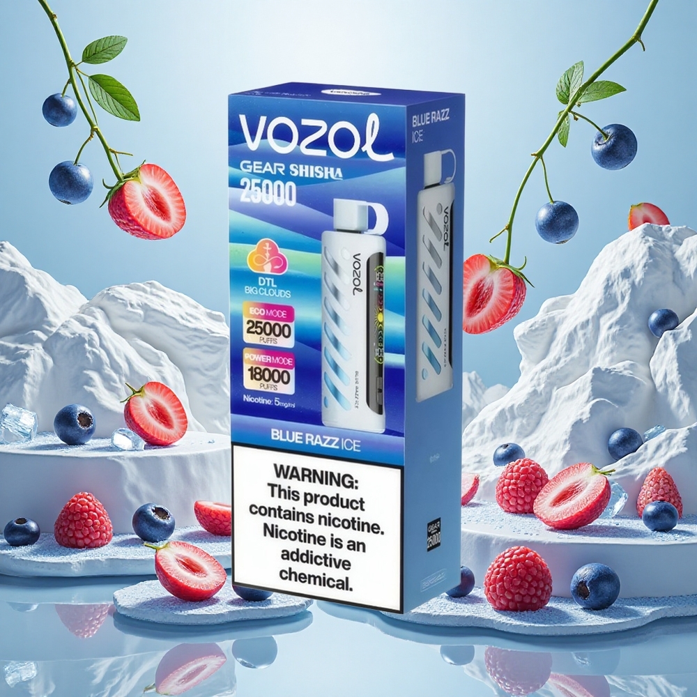VOZOL Gear Shisha 25000 Puffs Blåbringebær Is med 30 Deilige Smaker og 1000mAh Batteri