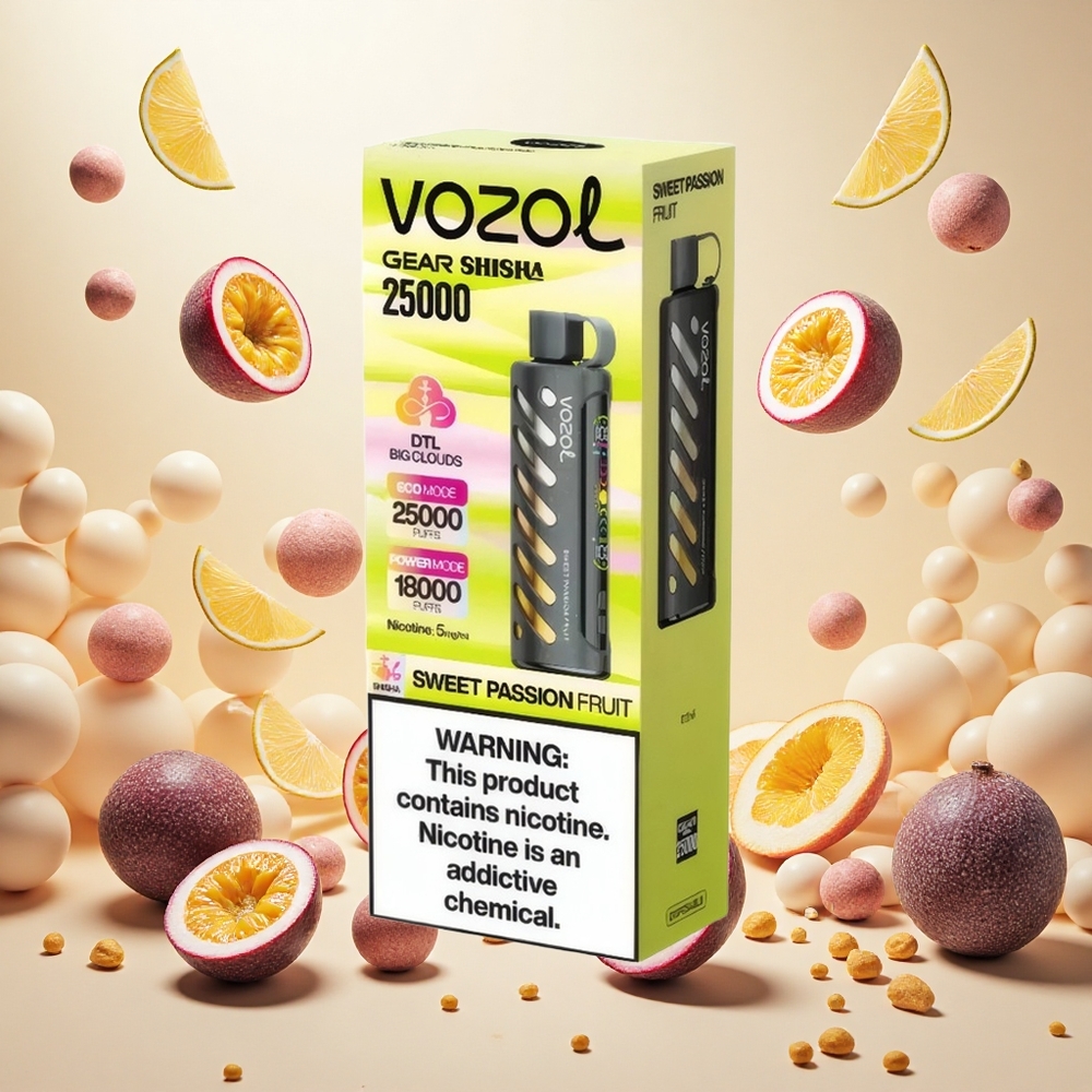 VOZOL Gear Shisha 25000 Puffs Disposable Vape Søt Pasjonsfrukt med 30 Deilige Smaker og 1000mAh Batteri