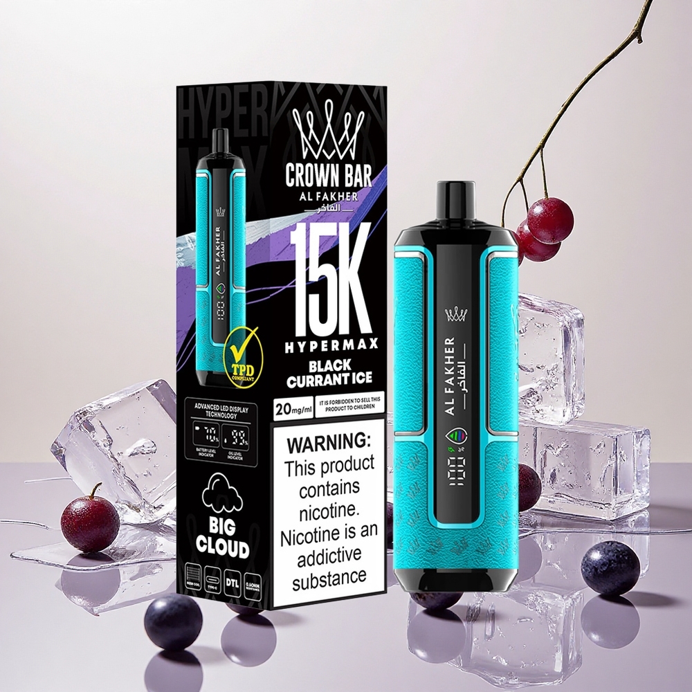 Al Fakher Crown Bar 15K Hypermax Engangs Vape Kit med 22ml e-væske og Svartsyltetøy Is