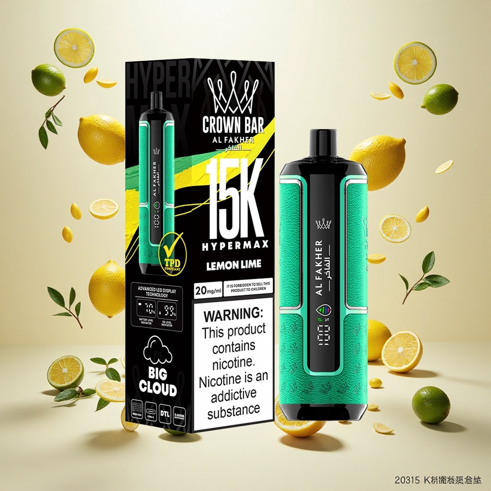 Al Fakher Crown Bar 15K Hypermax Engangs Vape Kit Sitron Lime med 22ml E-væske og 15 000 Puff