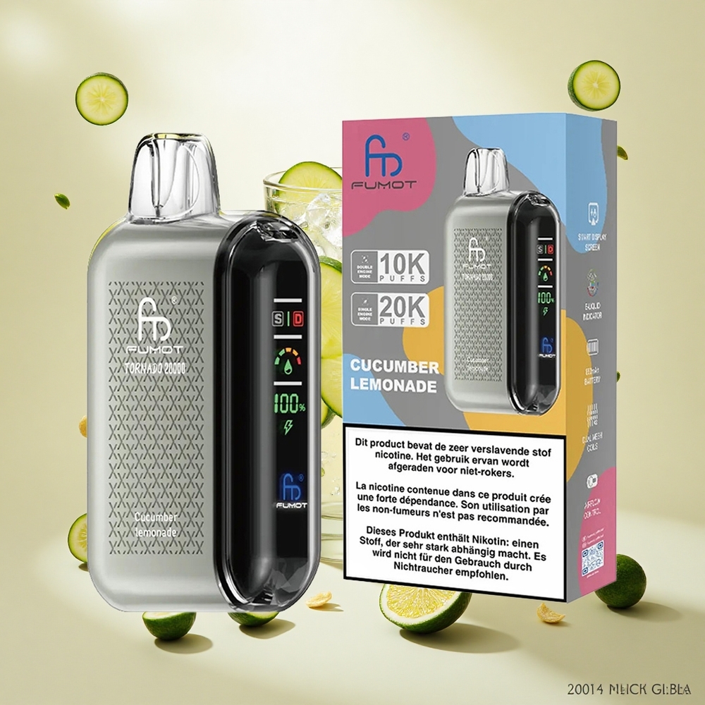 Fumot Tornado 20000 Puffs Engangsdamp Agurk Sitronade med 20ml E-væske og 850mAh Batteri