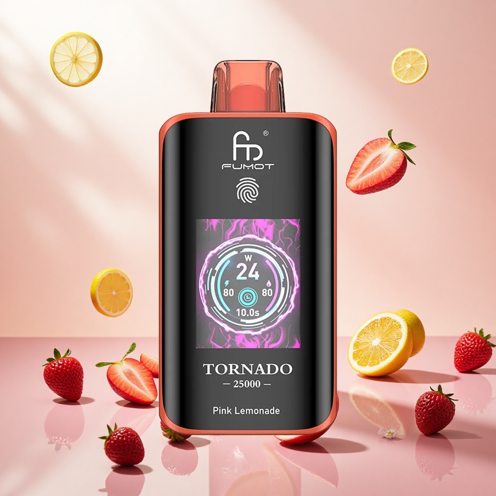 Fumot Tornado 25000 Puffs Med HD Skjerm og 700mAh Batteri – Rosa Sitronade