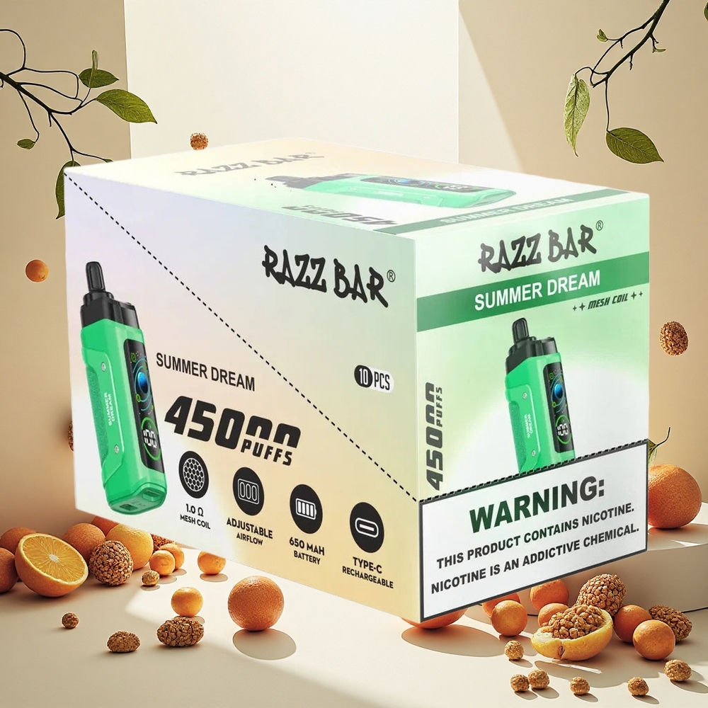 Oppdag den revolusjonerende Razz Bar 45000 Puffs Disposable Vape, designet for å levere en kraftig og langvarig dampopplevelse. Med avanserte funksjoner og en elegant design, er dette det perfekte valget for både nybegynnere og erfarne brukere. Nå tilgjengelig for wholesale norge, så du kan glede kundene dine med et premium produkt til en konkurransedyktig pris.